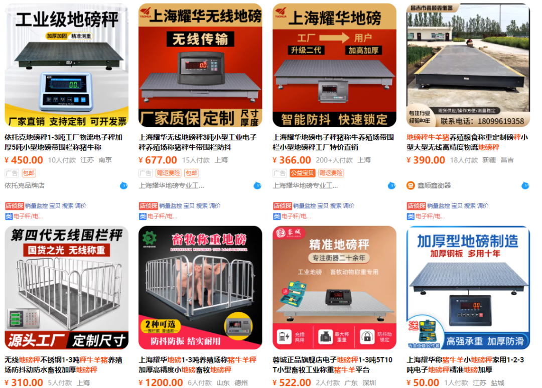 該店鋪售賣的地磅秤產(chǎn)品客單價(jià)在600-1000+不等,整體客單價(jià)偏高。接手前,商家齊樂(lè)將店鋪的定位人群放在了養(yǎng)殖戶群體,個(gè)體戶上,整體的需求量小,市場(chǎng)提升空間有限。