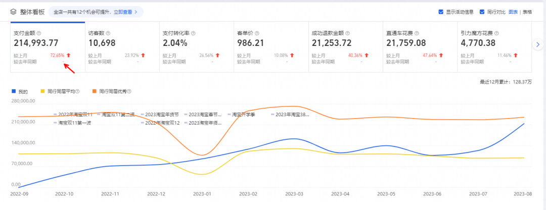 1.付費(fèi)板塊投入不大,只做了付費(fèi)的直通車引力魔方基礎(chǔ)模塊 店鋪新客成交少;