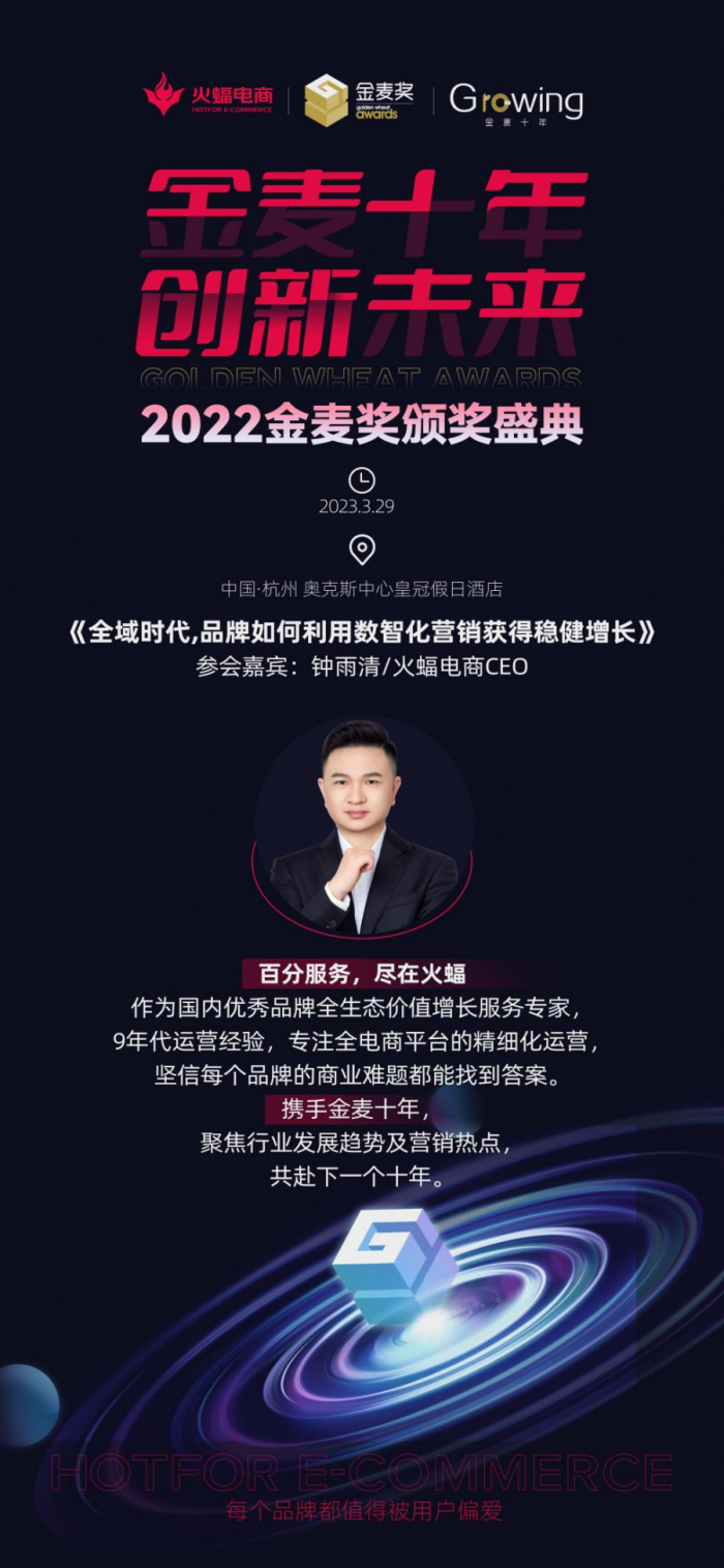 作為金麥獎的老朋友與資深合作伙伴,火蝠電商愿攜手金麥獎,共同奔赴下一個十年。